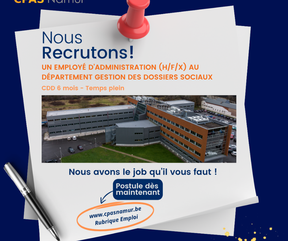 Le CPAS de Namur recherche un employé d’administration au département Gestion des dossiers sociaux