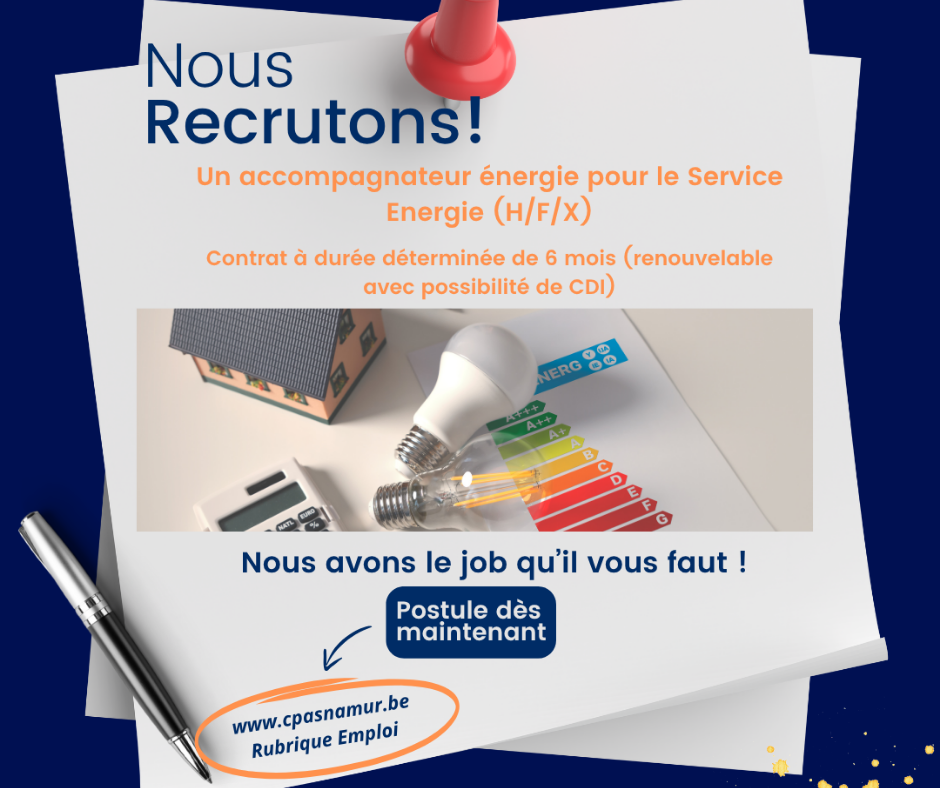 Le CPAS de Namur recherche un accompagnateur énergie pour le Service Energie (H/F/X)