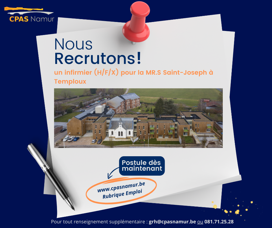 Le CPAS de Namur recherche un infirmier de jour pour la MR.S Saint-Joseph (H/F/X)