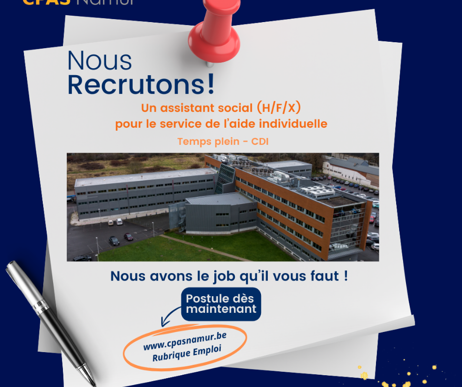 Le CPAS de Namur recherche un travailleur social pour l’aide individuelle en secteur (H/F/X) - contrat à durée indéterminée - temps plein